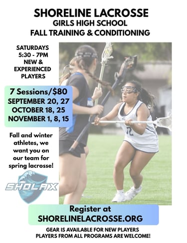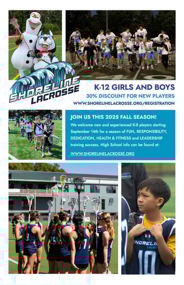 Welcome to Shoreline Lacrosse, (AKA Sholax). Lacrosse is a fun, fast paced sport and the oldest team sport in North America. It is growing in popularity in the PNW and we are excited to be a part of this growth. Shoreline Lacrosse is the sole recreational lacrosse club for both boys and girls in kindergarten through 12th grade living in the cities of Shoreline, Lake Forest Park, and portions of Edmonds, WA. We are a volunteer run nonprofit and we welcome all players regardless of experience, athletic ability, race, ethnicity, gender, or ability to pay. Follow the links above or below to register for our current season or to learn more about what's going on, who we are, and the sport of lacrosse.
